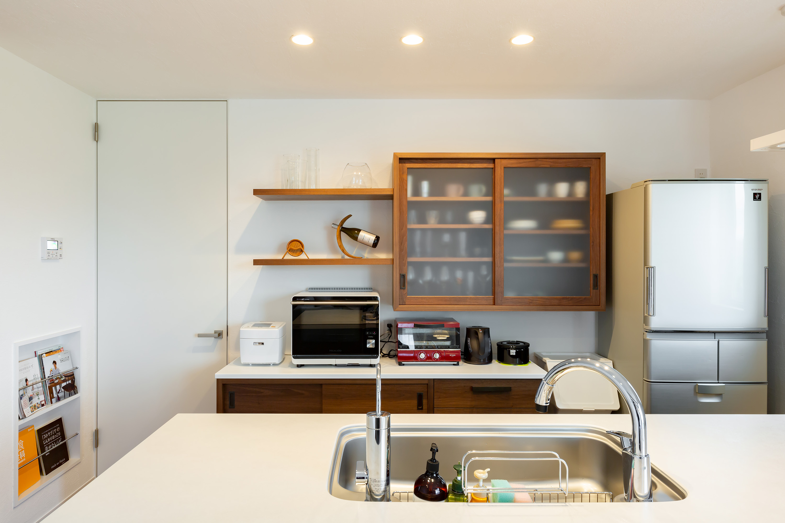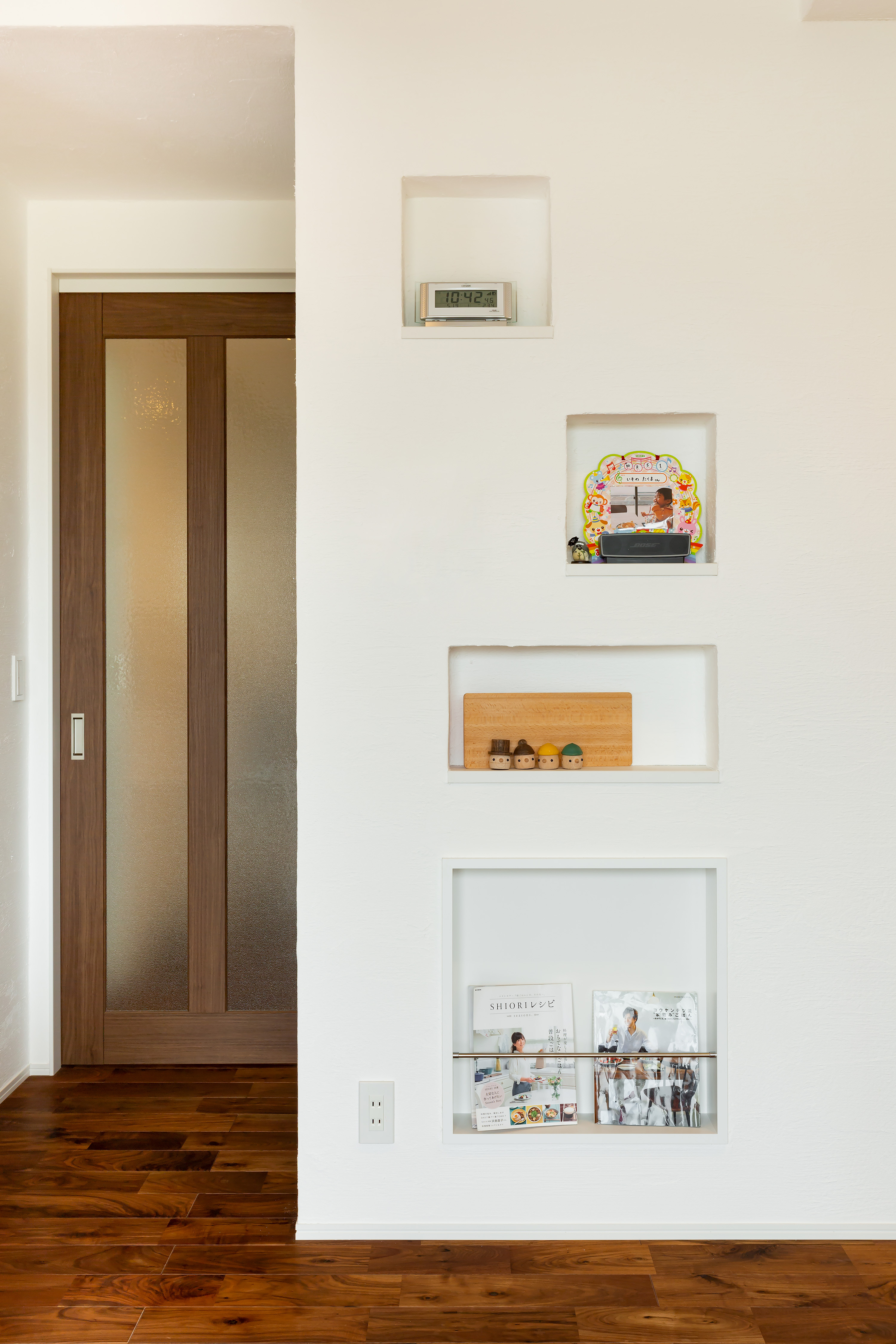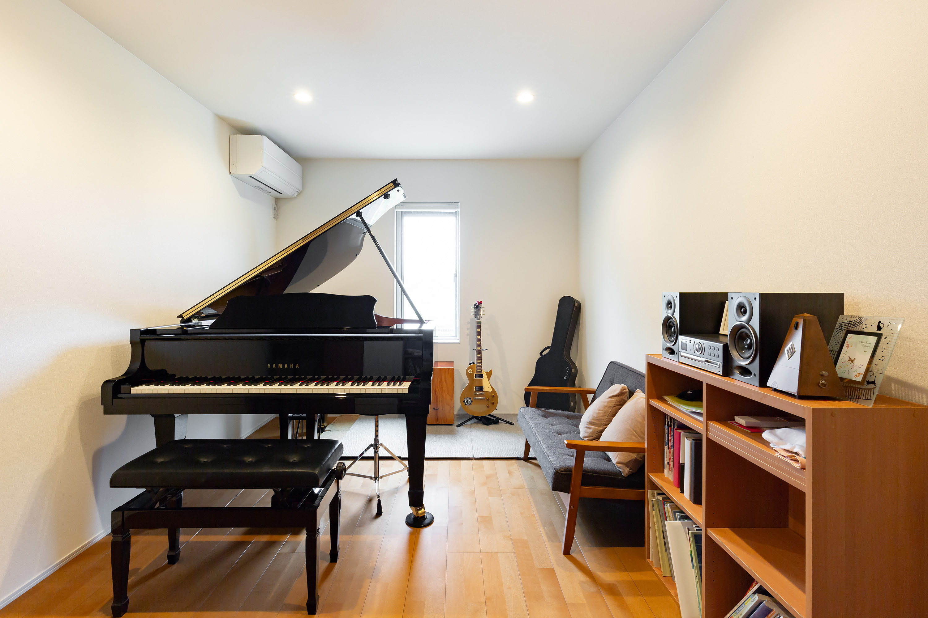 自然素材にこだわり、漆喰の壁や無垢材の床などで仕上げた「からだに優しい」住まいができました。ご夫婦がお気に入りの景色を活かすため、リビングダイニングには大きな窓を設置し、四季の移り変わりを眺めることができます。また、ご夫婦の趣味である音楽を楽しむために防音室を設けました。ご近所に気兼ねなく演奏を楽しむことができます。